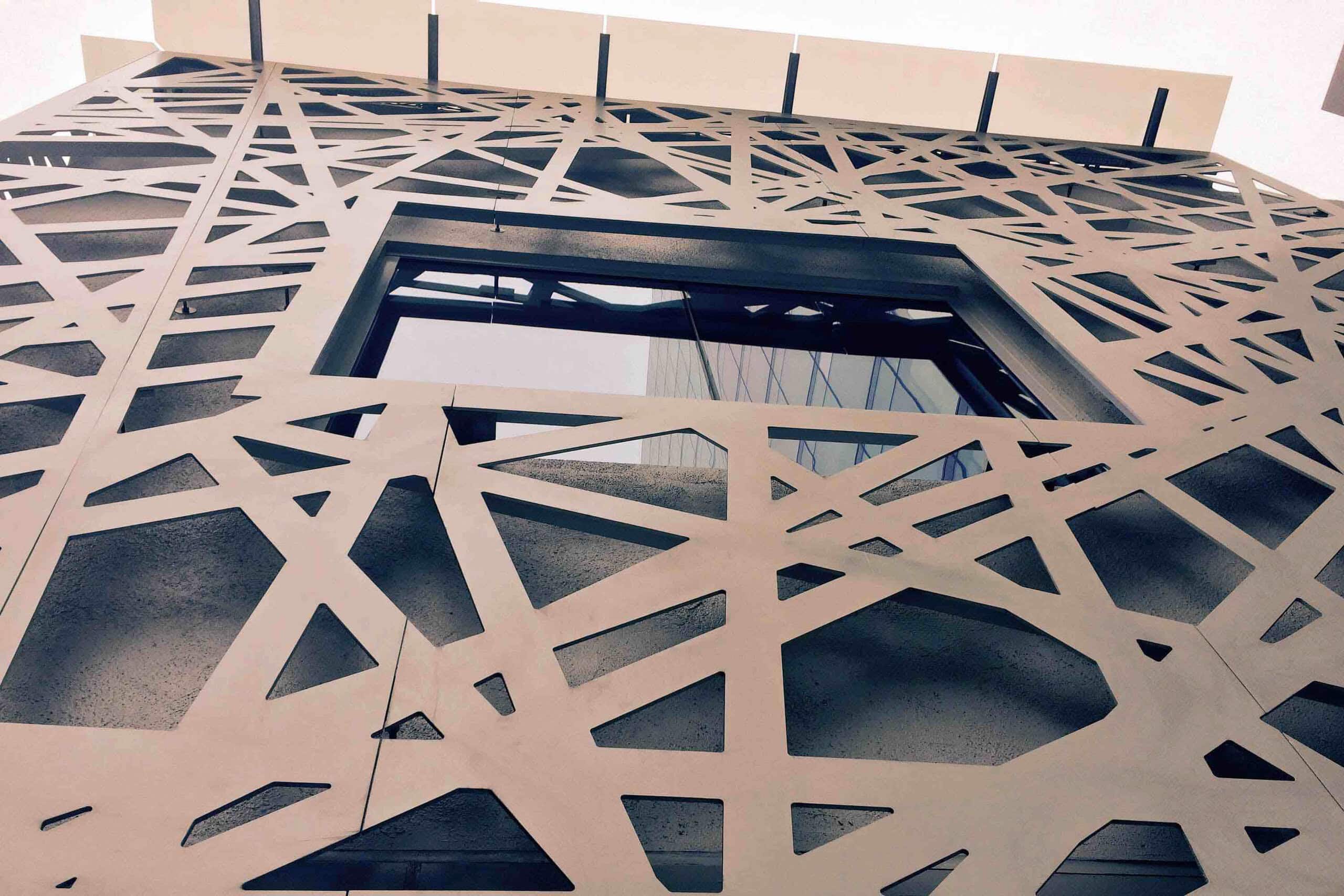 San Francisco’s version of the “Bird’s Nest”, this building is wrapped with a distinctive custom metal screen that appears to float, through the use of LED lighting. EBS wrote the Architectural Specifications.