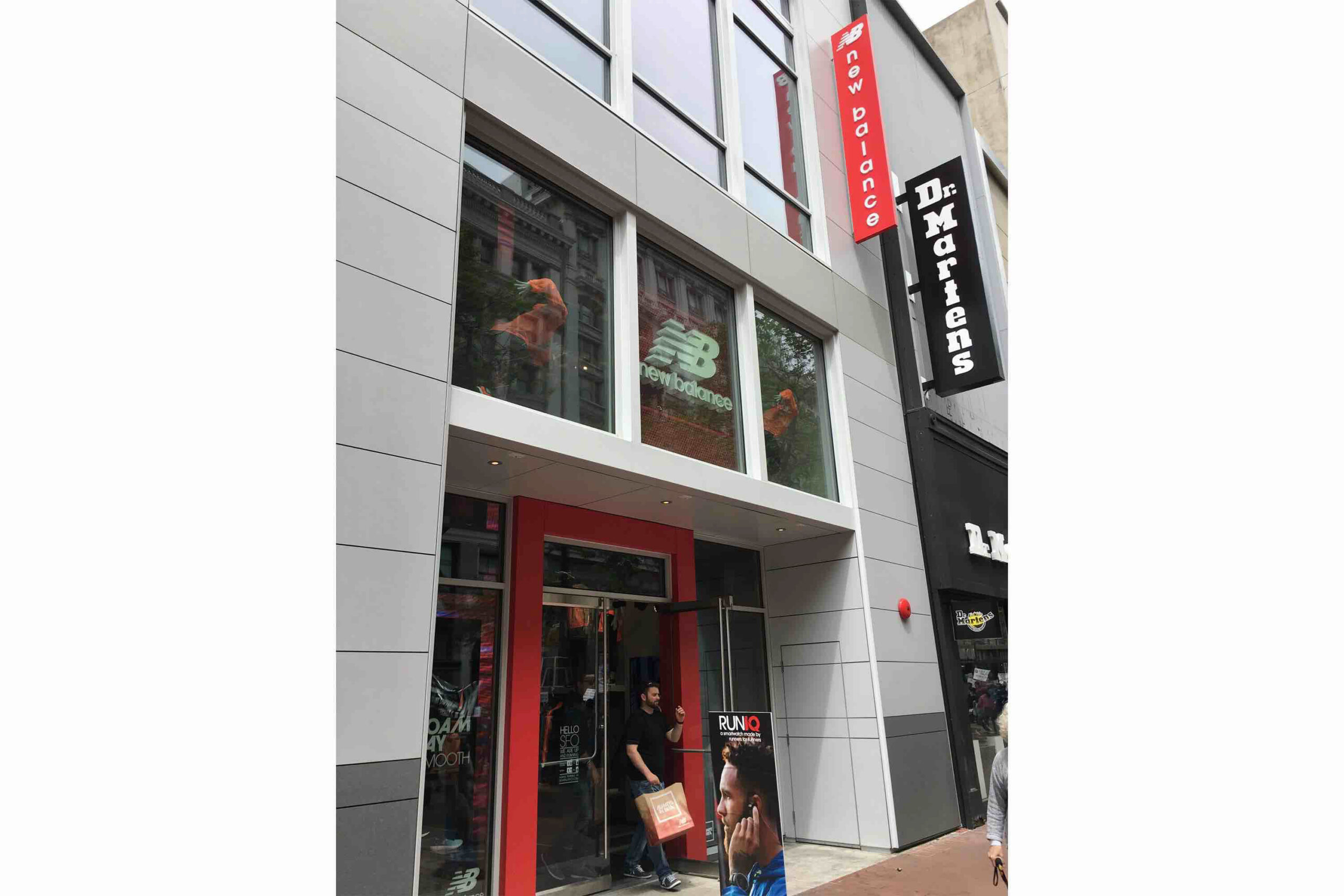 New Balance’s flagship store in San Francisco features three floors of retail. EBS wrote the architectural specifications.